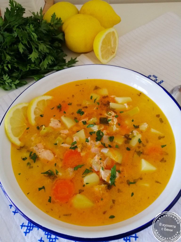 Здравейте приятели! ☺️Често се вдъхновявам за това какво да сготвя от продуктите, които ми „грабват окото“, докато пазарувам. Именно така вчера се изкуших на рибния щанд в любимия ми магазин „Хит“ и купих срещу сумата от 1.90лв. тарелка с рагу от сьомгова пъстърва.🛒🐟 В нея имаше всичко нужно за направата на вкусна рибена супа. Не претендирам за автентичност, тъй като знам, че рибена чорба са прави от няколко вида риба. Важно е, че разнообразих менюто и си хапнахме сладко, сладко. 👩🍳🥣🍋😋Всъщност днес ви представям рецепта номер 500 от вече публикуваните в моята страничка.🤩🎉 Надявам се на здраве и вдъхновение за още много достъпни, вкусни и лесни идеи за домашни гозби и десерти.🥰