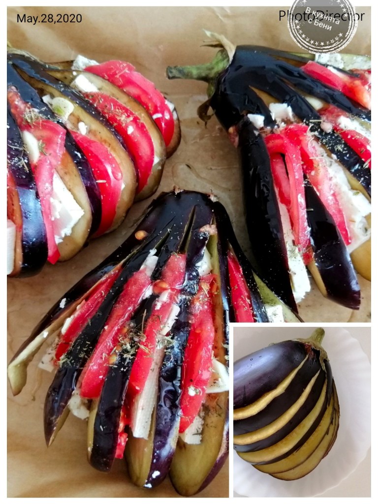 Вчера докато пазарувах, си харесах три малки и много симпатични патладжана, които превърнах във вкусно ястие тип „ветрило“. 🍆🍆🍆 Момчетата вкъщи не обичат особено този зеленчук, но пък поглезих себе си.👩🍳😋🍴 Затова и бих определила това ястие като не много подходящо за деца, но пък много подходящо за ценители, особено в компанията на чаша добре охладено бяло вино.🤩🥂🥘