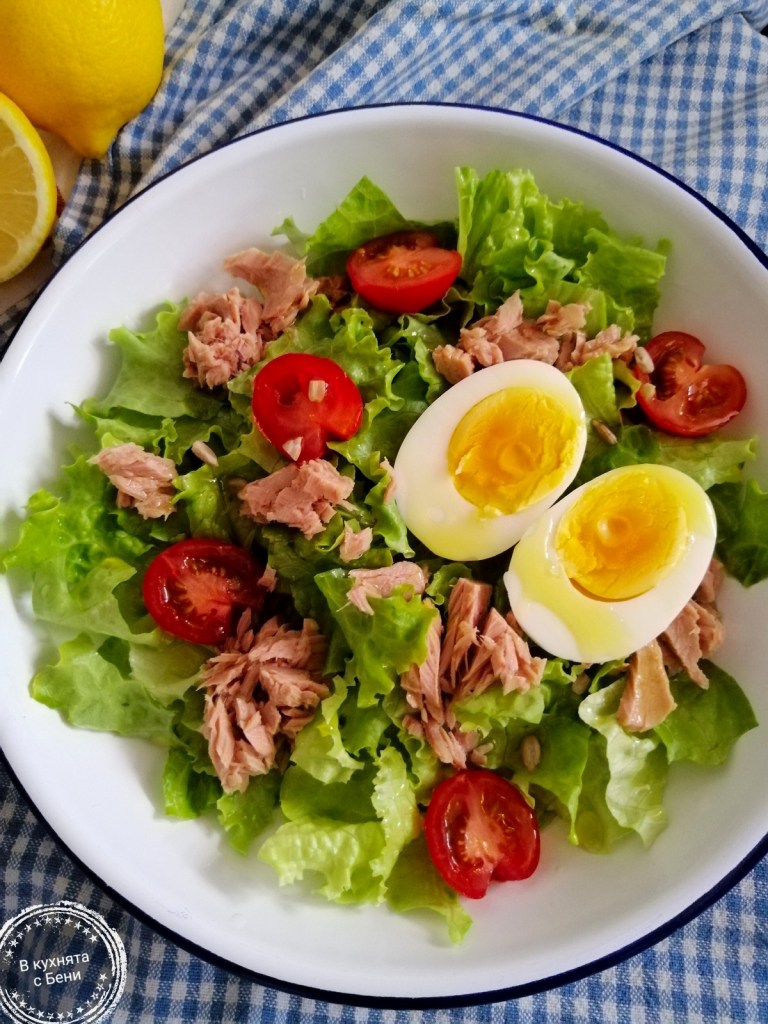 В допълнение ще споделя и любимата салата на малкия ми син, която със сигурност всички знаете как се приготвя. 🥗😋🍴