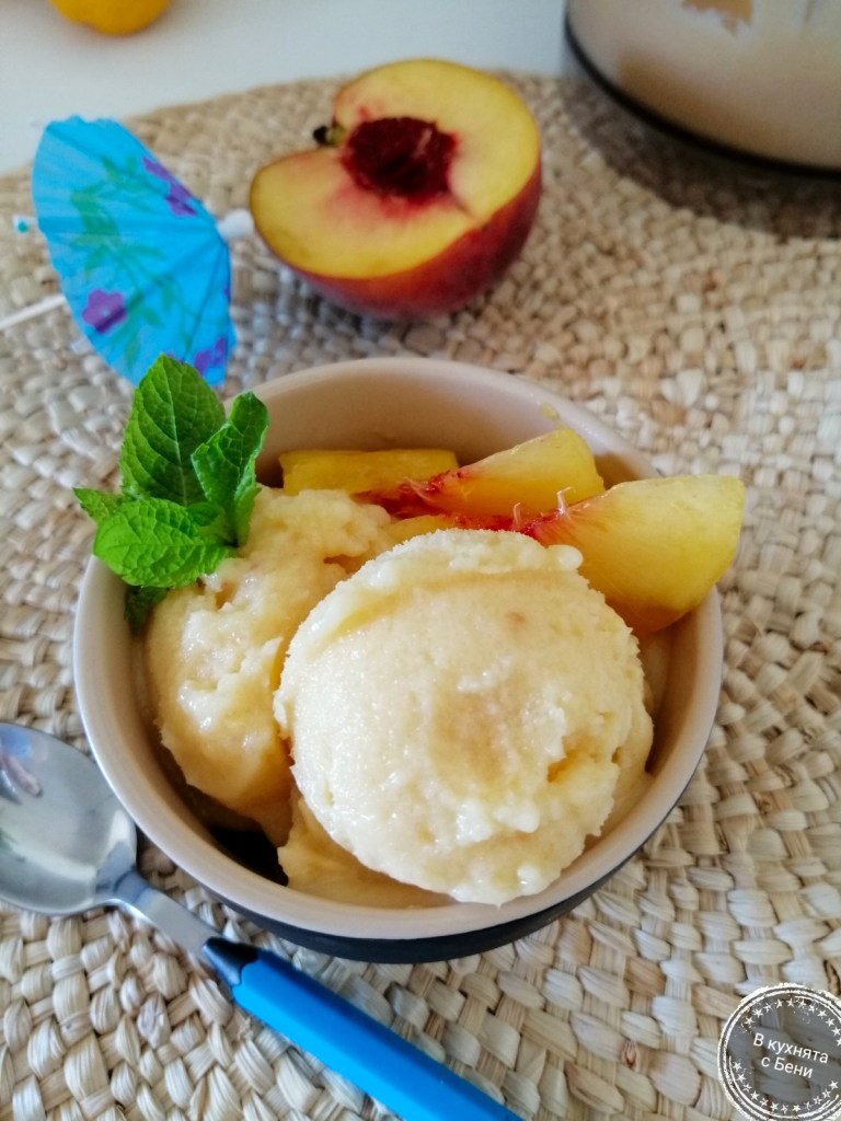 В топлата неделя ви представям много свеж, полезен и вкусен сладолед с праскови. 👩🍳🍑🥛🍨🥄😋🌞