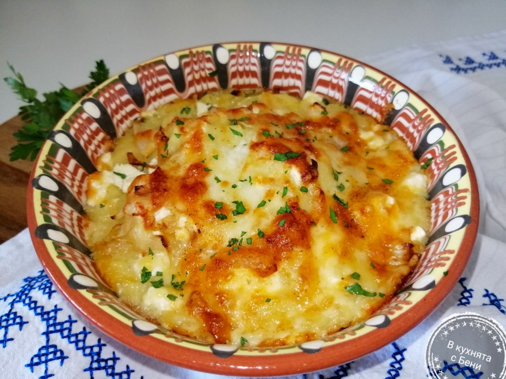 Сложих ястието да се пече в загрята на 190 гр. фурна до апетитен загар.