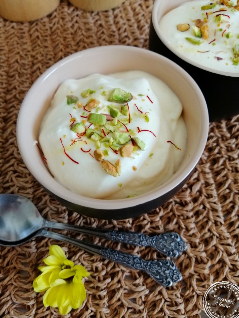 От известно време следя с голям интерес предаването на английския готвач Рик Стайн, който пътува из Индия и готви традиционните им ястия и десерти.🤩🌅 Честно казано продуктите, които използва са по-специфични и не разполагам с повечето от тях, но един десерт ми грабна вниманието. Приготвих го и дълго се чудих дали да го споделя с вас, но тъй като момчетата го харесаха, реших да ви го представя. Всъщност това е ароматен и вкусен сметанов крем.🍨🥄😋 Сметаната, която Рик използва изглеждаше същата и текстурата на крема се получи еднаква. За жалост не запомних името на десерта. Ще се радвам, ако някой от вас е приготвял успешно индийска храна, да сподели рецепта. 🤗 Също така търся изпитана рецепта за крокети, каквито се приготвят в Испания. Знам, че съдържат сос „Бешамел“, но дотам. 😃