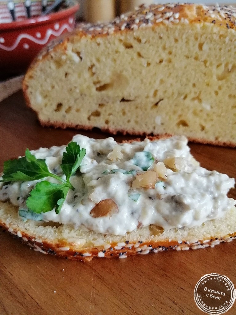 Оставих леко да изстине и разрязах. Филийките намазахме с любимата разядка с патладжан.