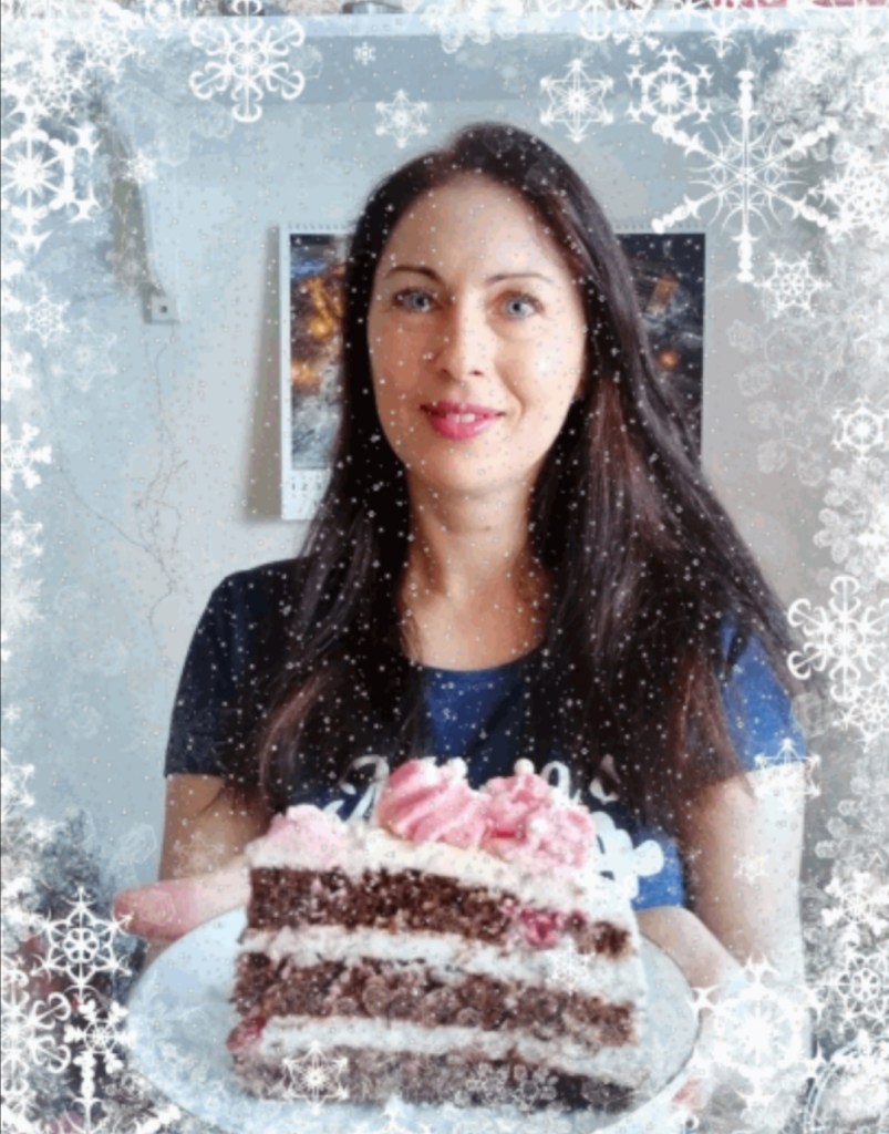 Да ви е сладко! 😋 Преди години бях яла торта, в която имаше целувки и затова сложих и в моята, но за съжаление явно се бяха стопили и тези отвътре не се усащаха… Или може би ги бях натрошиле на доста дребно… Ако някой знае каква е тайната? 🙂