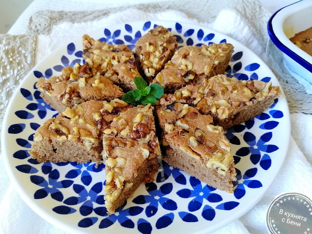 Ореховите ядки, които купувам не са половинки, каквито помня, че слагаше пловдивската роднина, но и с парченца се получи чудесно.