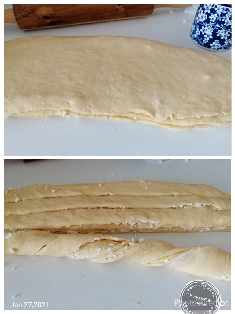 Когато вали сняг и всичко навън е побеляло, винаги ми се иска да омеся и изпека нещо вкусно. ☃️🤩👩🍳♨️ Именно затова днес запретнах ръкави и приготвих този чудно мекичък и вкусен усукан тутманик по рецепта на Djenny Dzhildzhova, за която й благодаря! 💞Много е лесен за направа и със сигурност ще зарадвате семейството си. 😍😋 Забравих да го намажа с яйце и май прекалих със сиренето, та леко извираше, но не мисля, че това е оказало влияние за прекрасния му вкус.🤪🙃👌♨️