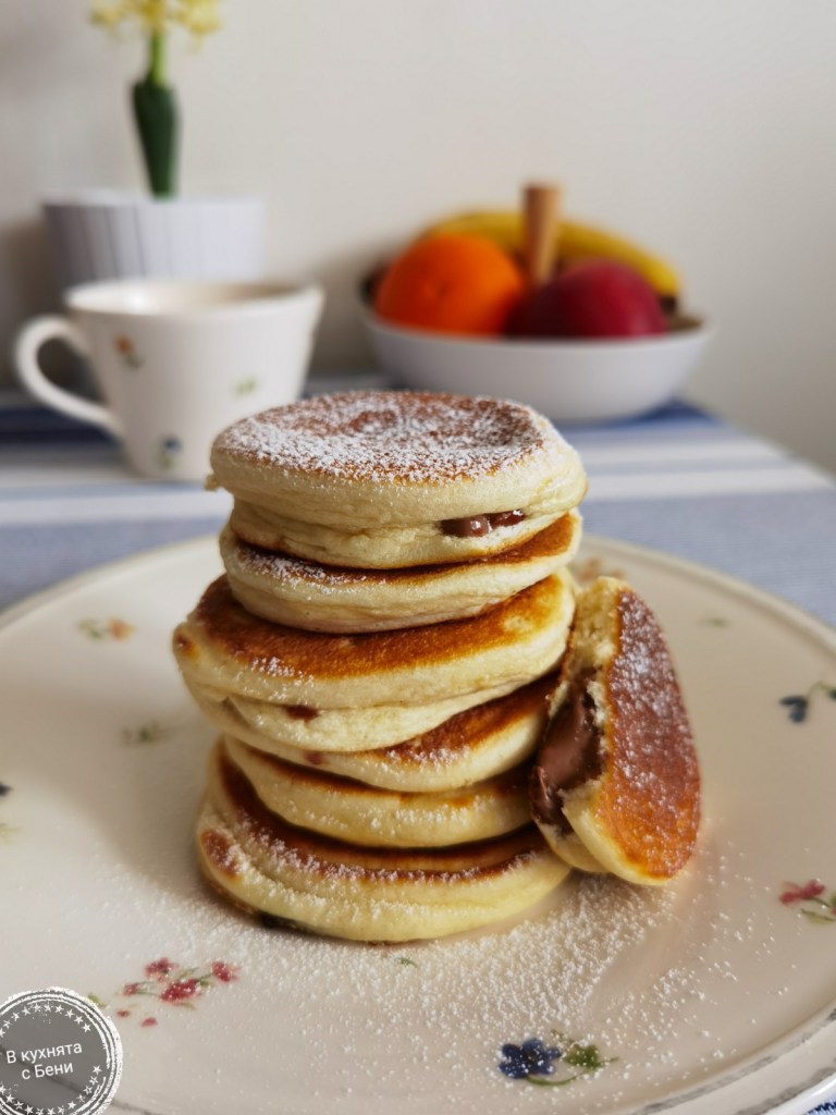 Днешната закуска е по рецепта на Бисерка Йосифова, за която й благодаря! 🥰🥞 Разкошни мини палачинки с пълнеж от шоколад поднесох на момчетата ми, които ги оцениха високо. 🥞🍫😋🤩Приготвят се лесно и бързо, и са много вкусни.👩🍳👌
