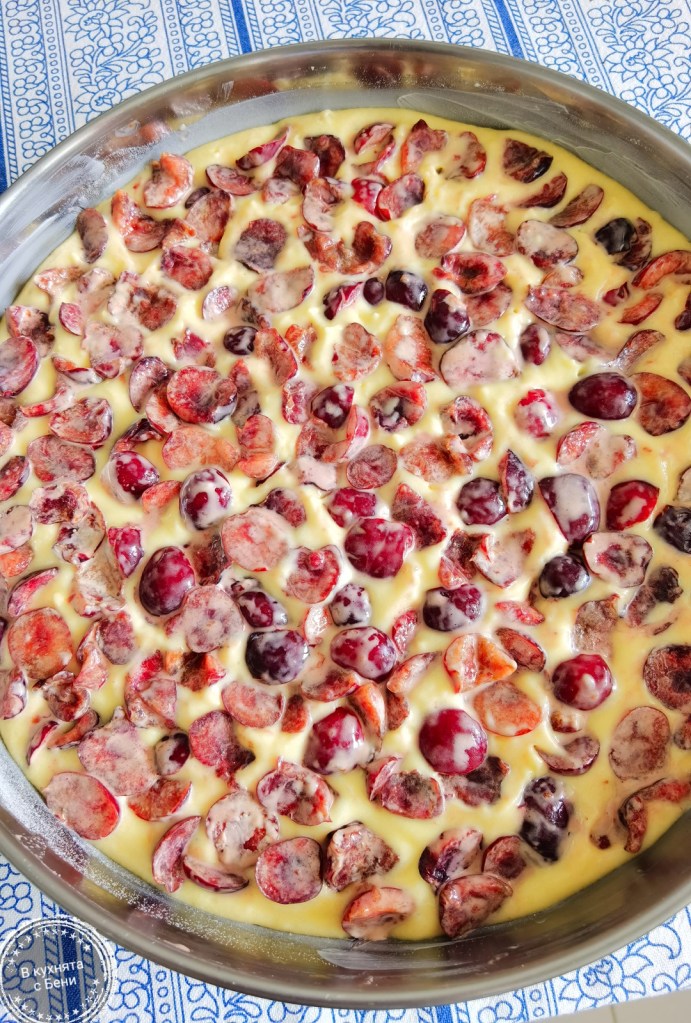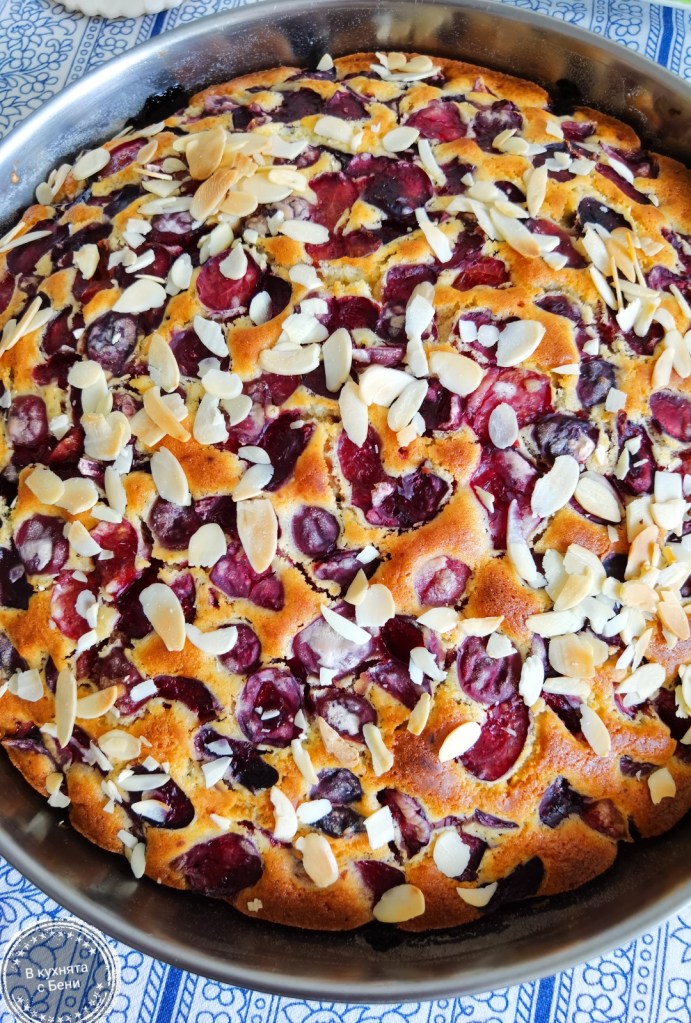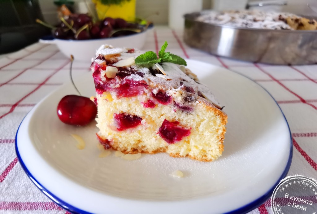 Тези дни се сдобих с по-голямо количество череши и макар да хапнахме много от тях, останаха.🍒🧺🤩 Това ме мотивира да приготвя този лесен и много вкусен сладкиш, който всъщност е първият десерт, който приготвих когато бях в 4 клас.🤗🍒 За съжаление тогава претърпях провал, защото спазих написаното в кулинарната книга време за печене от 25 минути, което се оказа крайно недостатъчно и сладкишът стана глетав.📝🤔 Сега, разбира се всичко е наред и вкъщи имаме вкусен и добре изпечен десерт. ♨️🍒😋😍 Всъщност печенето е от съществено значение за успеха на рецептите. Моят съвет е, никога да не отваряте вратата на фурната преди да изминат 25 минути от началото на печенето. ♨️