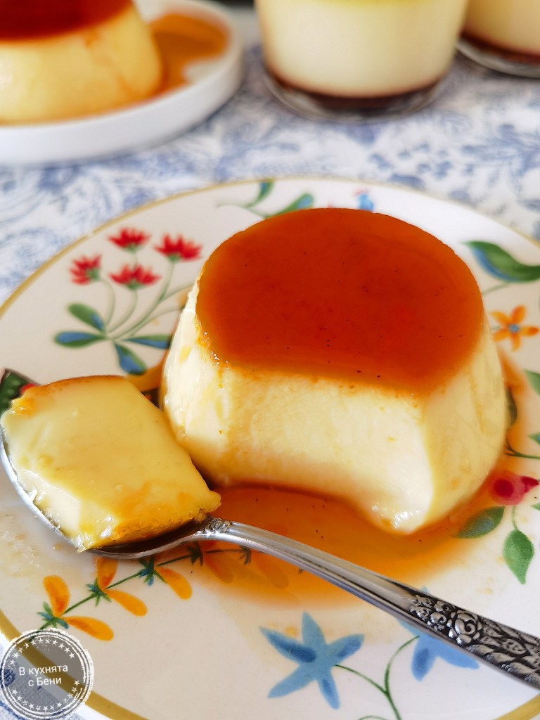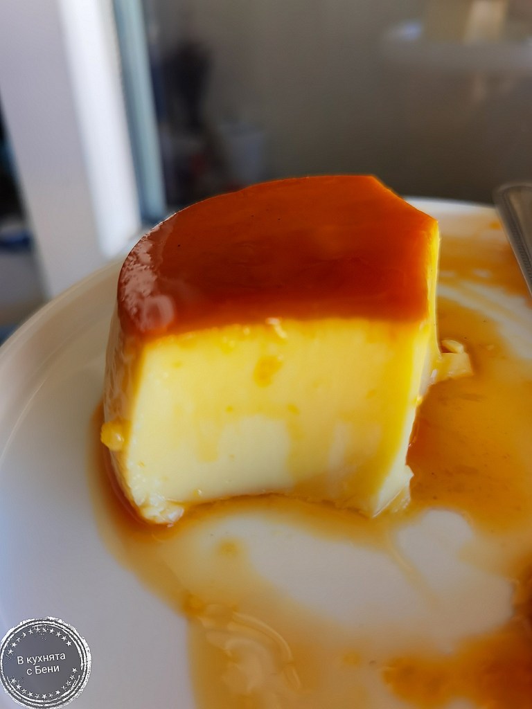 Днес големият ми син се връща от море и реших да го изненадам с любимите му хапвания, между които и крем карамел. 😍👩🍳🍮🥄😋 Тази рецепта никога не ме е подвеждала, като две са важните условия, за да се получи гладък крем. Да се пече на не повече от 120 градуса и захарта да се разтопи в леко затопленото мляко. Избързах да обърна един крем карамел за снимката и затова визията му не е много добра, но когато се охлади и в хладилника, се получава перфектен. Ако забелязвате черни точици в карамела, те са от ванилията на прах, която ползвам. 🍮🥄🤗