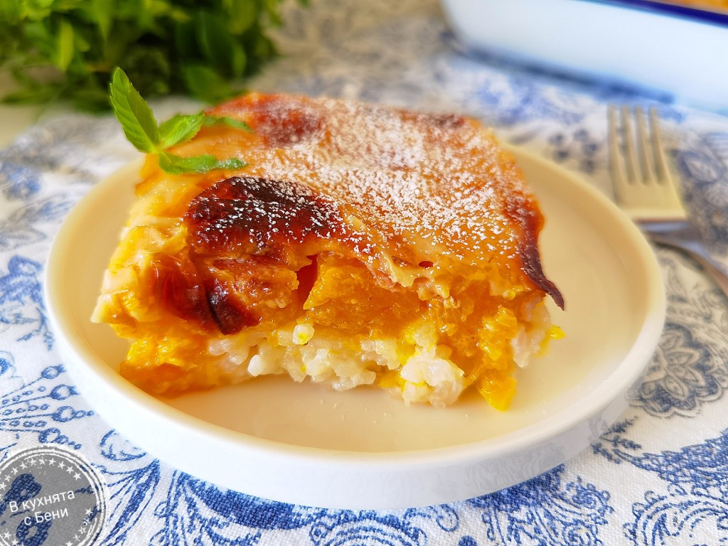 📌Следващият път по средата на печенето, бих разбъркала леко сместа, за да е по-равномерно разпределението на пластовете тиква и ориз.