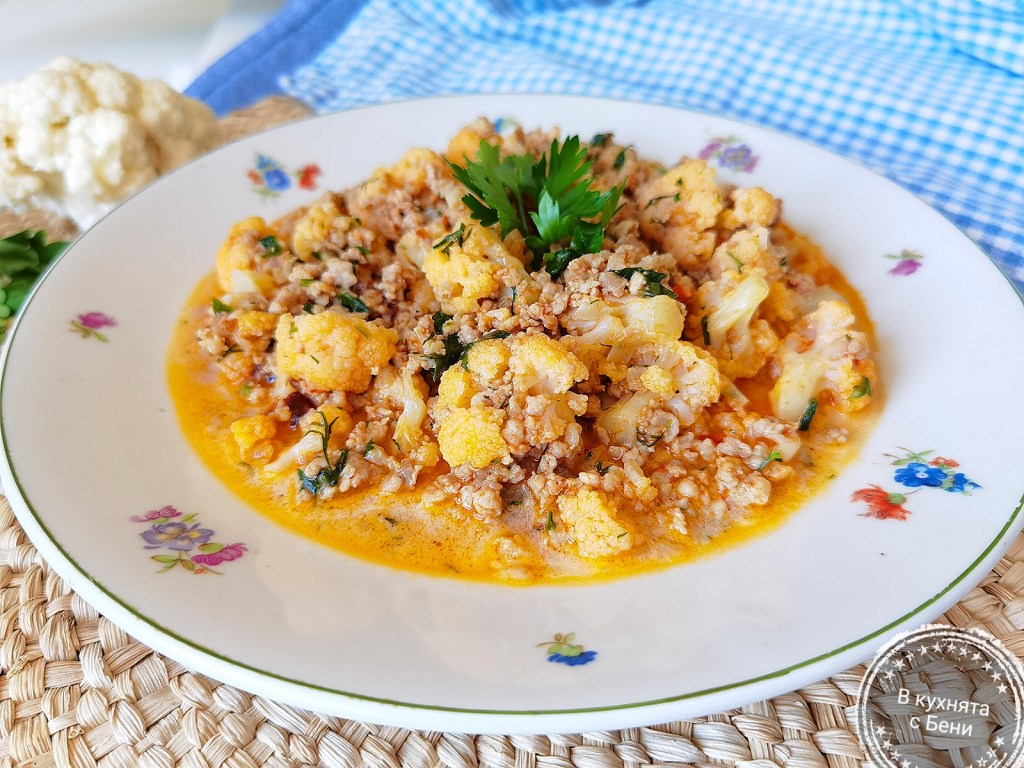 Много обичам карфиол и днес реших да го сготвя с мляно месо, като вкусна гозба тип яхния, която няма вид, но ще се хареса на любителите на белия сезонен зеленчук. 🥘🍴👩🍳😋