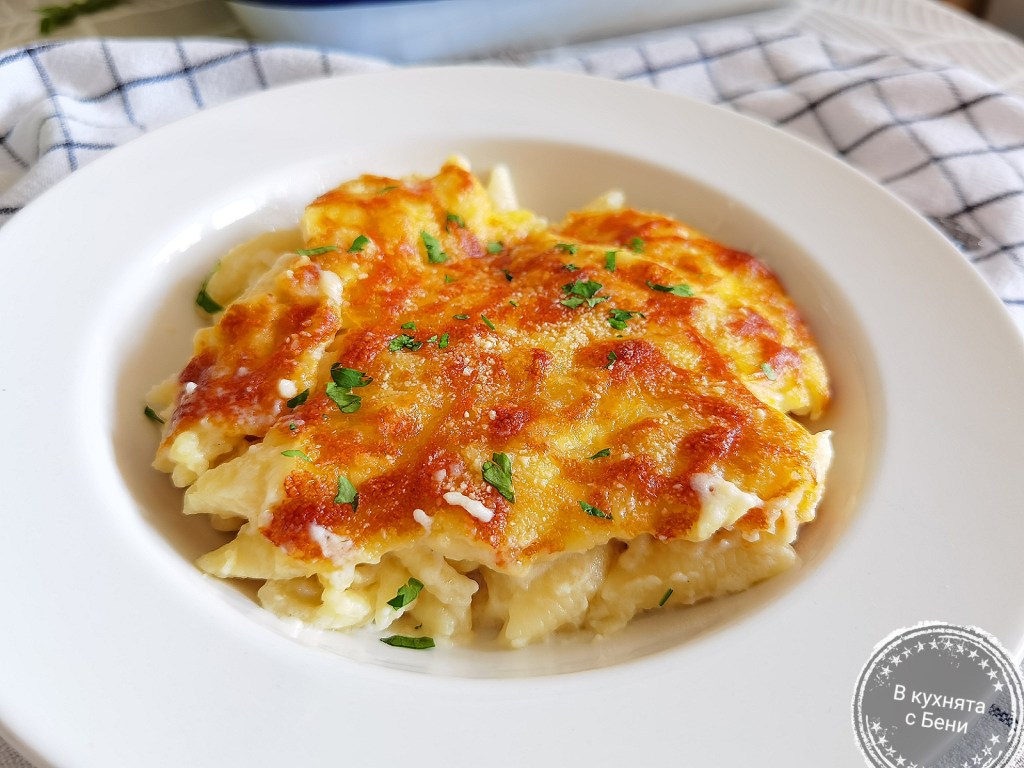 Днес приготвих много вкусна паста със сирена на фурна, която всички вкъщи обичаме. 😋🥘🧀🍴🤩Текстурата на соса е кадифена и уплътнява перфектно ястието, а вкуса на златистата коричка е просто чудесен. 👌♨️😋 Може да ползвате различна по вид паста, като аз предпочитам да бъде по-дребна тип ньоки, така че да поема добре от соса със сирената.♨️