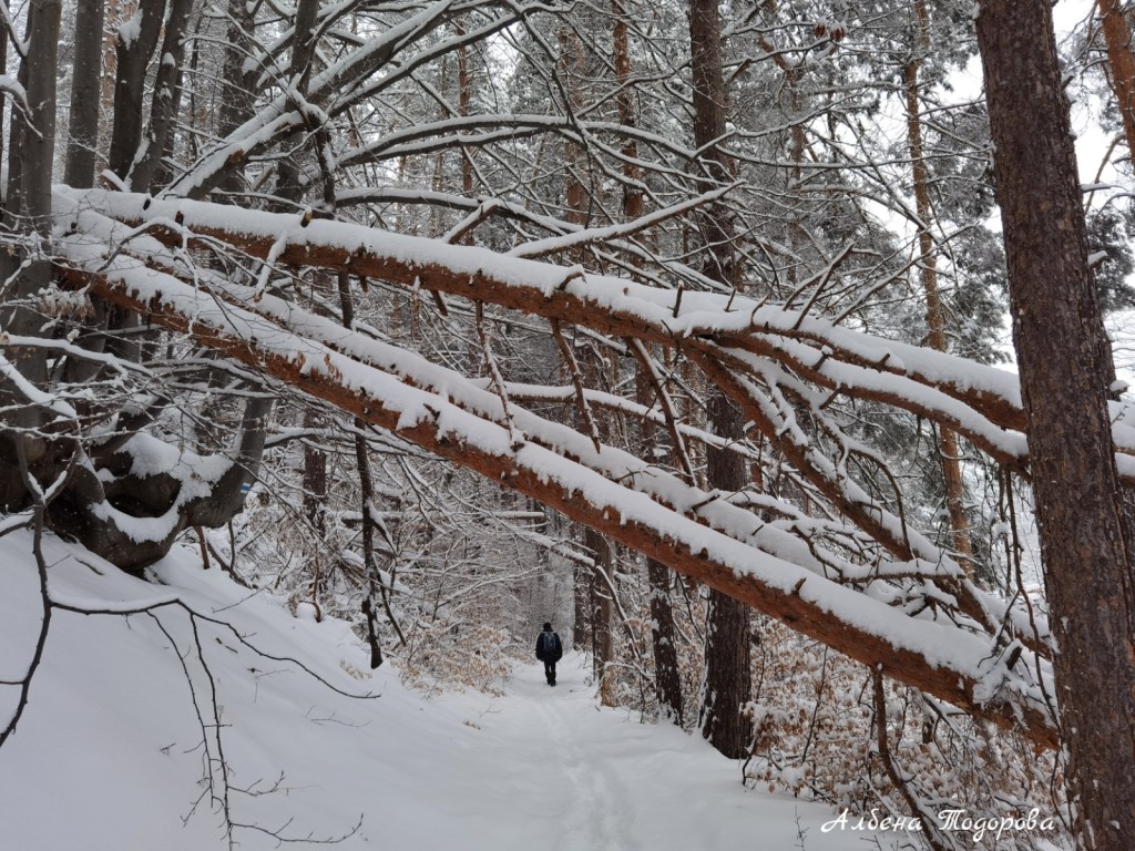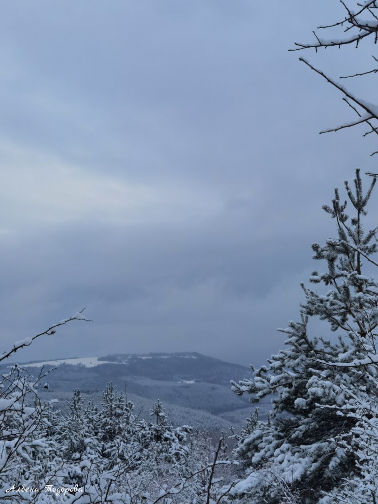 Времето бе много меко, макар -7 градуса. Нямаше никакъв вятър и всичко, около нас бе притихнало като кадър, заснет за зимна картичка. Вървяхме общо 15 км., които леко бяха затруднени от снега, през който си проправяхме път. На 10 тия километър спряхме за кратка почивка в заслон „Блага дума“, който добри хора са направили, като особено ме впечатли закачалката, която съм и снимала. Хапнахме и някак усетихме лека умора. Поехме по пътя към Бистрица и за жалост не успяхме да се порадвахме на синьо небе, тъй като снегът продължаваше да вали, макар и по-леко. И така забавили ход, дали защото хапнахме и ни се доспа или просто снегът ни изтощи, изведнъж чухме не твърде далече специфичен вой. 😳Хората са казали, че на страха очите/ушите са големи, но този вой трудно може да се сбърка. В този момент ни дойде такъв прилив на сили, че ускорихме скоростта до немислими за това метеорологично време нива. 😆😅🐕🦺💯 Междувременно в снега виждахме странни линии, които по всичко показваха, че оттам е минало същество с опашка, която явно я е влачело, щом е образувала такава права линия. За радост успяхме бързо да стигнем до мястото, от което се слиза към селото и някак сърцата ни се успокоиха. 🥵Там някъде видяхме и чуден синигер, който си търсеше нещо за ядене. Върху една дъска му оставихме малко хляб от единия останал сандвич и съм сигурна, че си е престрашил да си хапне. 🐦🥰🍞