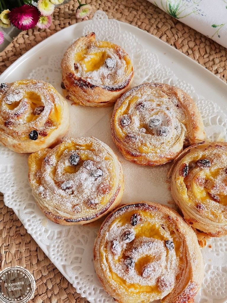 Имам един любим десерт, пред който трудно устоявам и който винаги се изкушавам да си хапна. 😋🍪😍Онзи ден видях бутер охлювчетата с крем и стафиди да се предлагат в един магазин, но тъй избягвам да купувам готови сладкиши, реших днес да си ги приготвя у дома. Много са вкусни и ги препоръчвам.👌😍