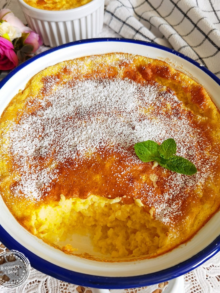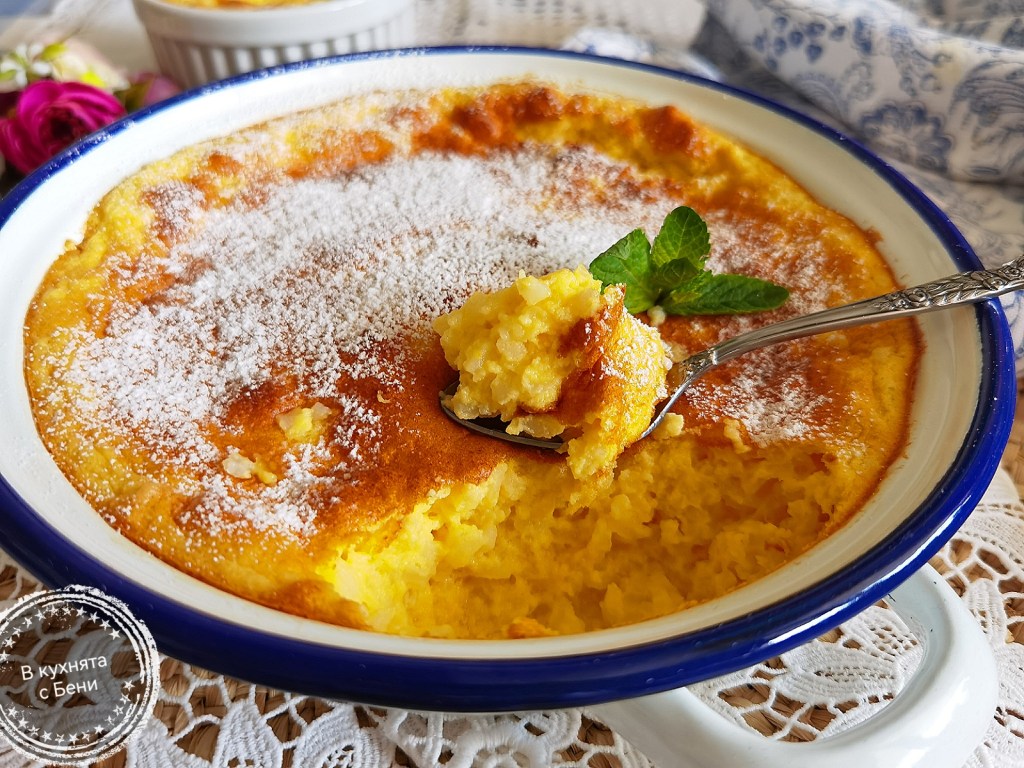 📌Захарта в посочена в рецептата беше една идея по-малко, поради което поръсих готовия десерт с пудра захар. Може вместо 100 грама да добавите 150 грама в сместа.