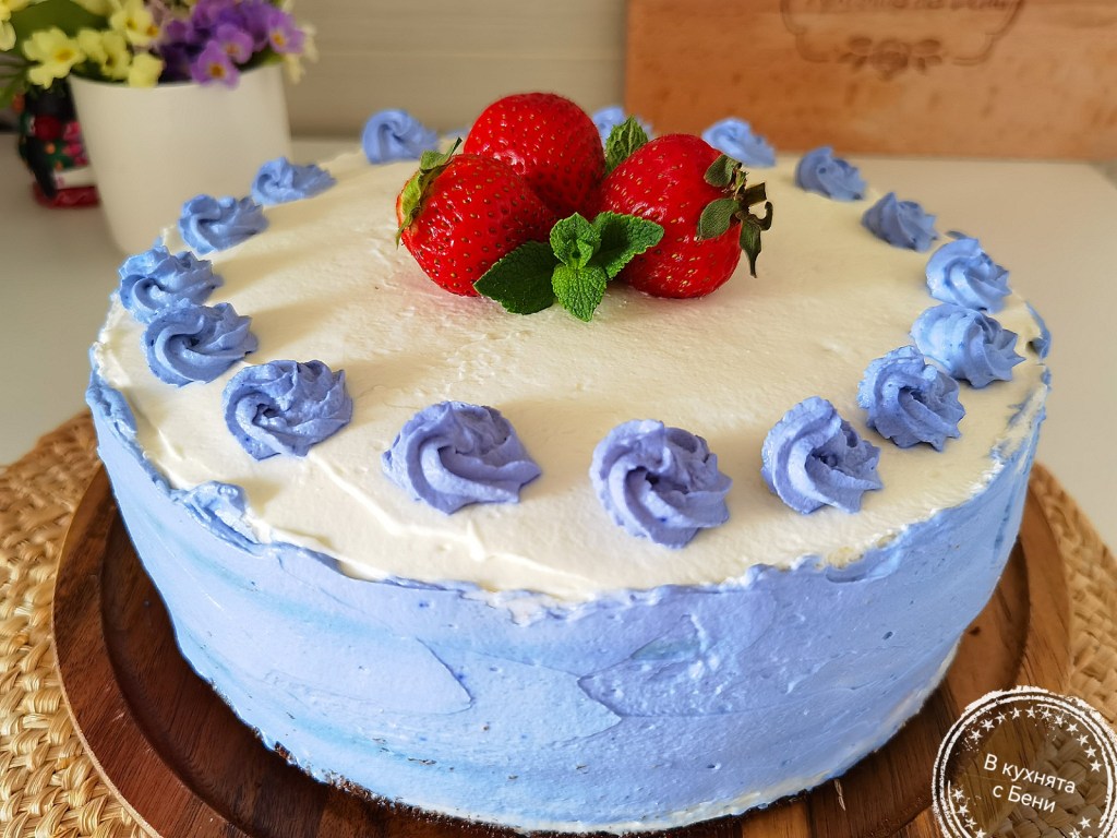 Понеже никога не съм ползвала масовите изкуствени оцветители за храна, а исках да придам по-различен вид на тортата, купих цветове от пеперуден грах, които са 100% натурални и придават различни нюанси на синьо и лилаво, спрямо ползваното количество. Отдавна исках да пробвам и съм много доволна от цвета. ☺️🎨🧚♀️