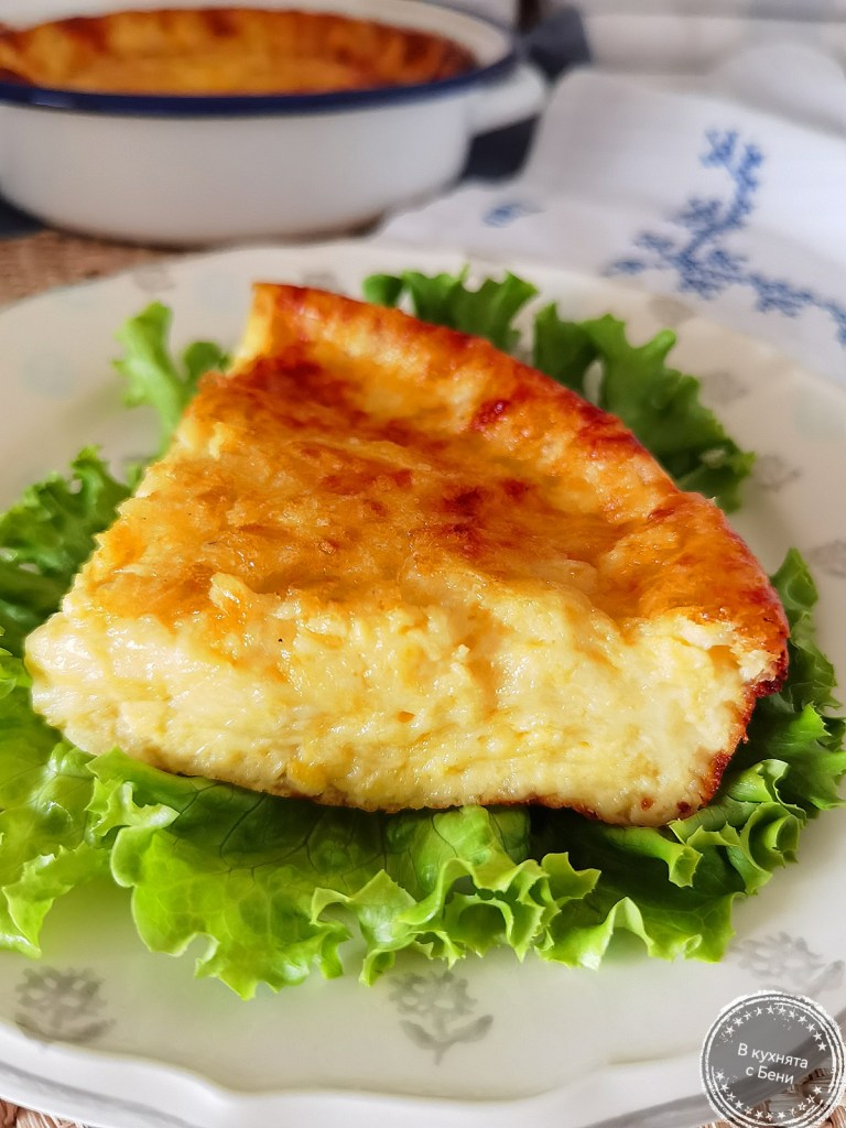 Сместа е за малка тавичка, като аз ползвах с диаметър 20 см. и височина 5 см. От това количество продукти се получават 4 средно големи порции.