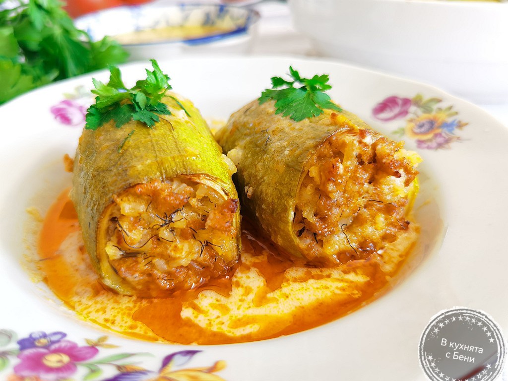 🥘5 средно големи тиквички /1,200 гр.//важно е тиквичките да са по-тумбести, за да могат да се издълбаят и напълнят по-лесно/