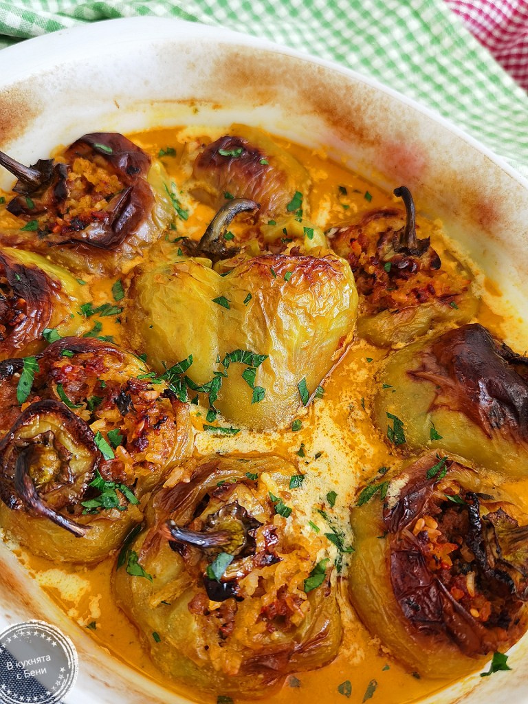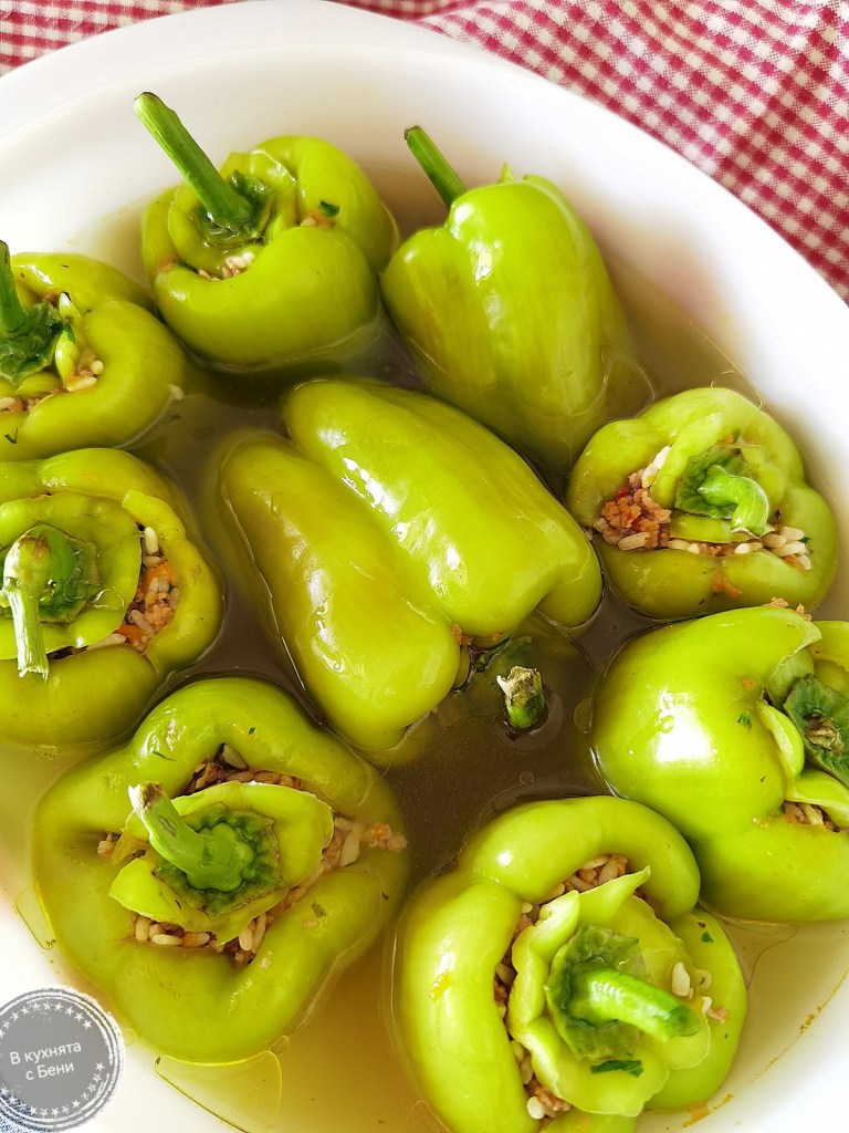 Днес Веско се прибра от море и го зарадвах с крехки пълнени чушки с мляно месо и ориз. 😍🚆🥘🍴Много обичам традиционната българска кухня и не я заменям за друга. Държа да готвя и с български зеленчуци, които за радост все още се намират /честно казано не правя компромис и съобразявам менюто с това/.🇧🇬👩🍳 Използвах чушки Долма, които се топят в устата и с тях гозбата се получи много вкусна. 😋👌🥘🌶