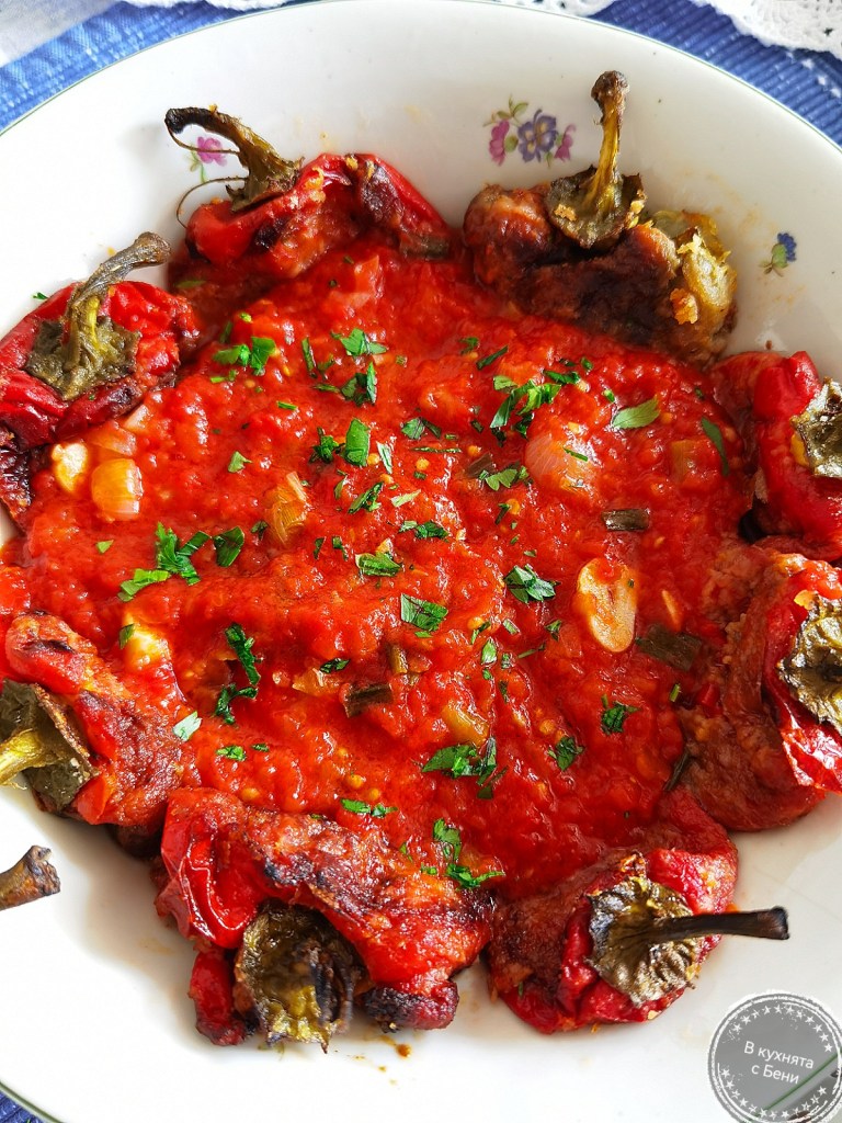 Бабината гозба с печен пипер и доматен сос от https://inthebeniskitchen.com/