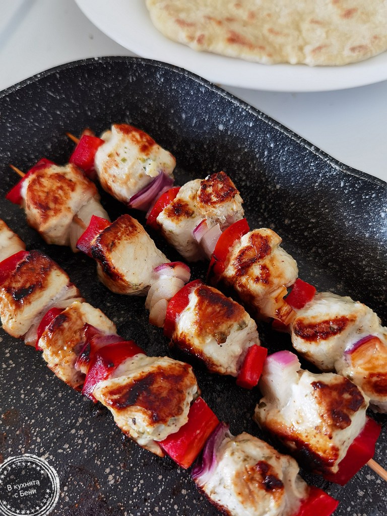 Днес у дома пекох шишчета от крехко пуешко месо, които се получиха много вкусни. 😋👩🍳🍡Обичам всичко, приготвено на скара, но уви, не разполагам с такава, защото нямам и балкон. 😒Затова прибягвам до грил тигана, който се справя чудесно с работата. 🤩Приготвих и лесните и бързи пърленки без мая, върху които разположих шишчетата. 🫓 Хапнахме с удоволствие и всички благодариха.😋😍🌮👌