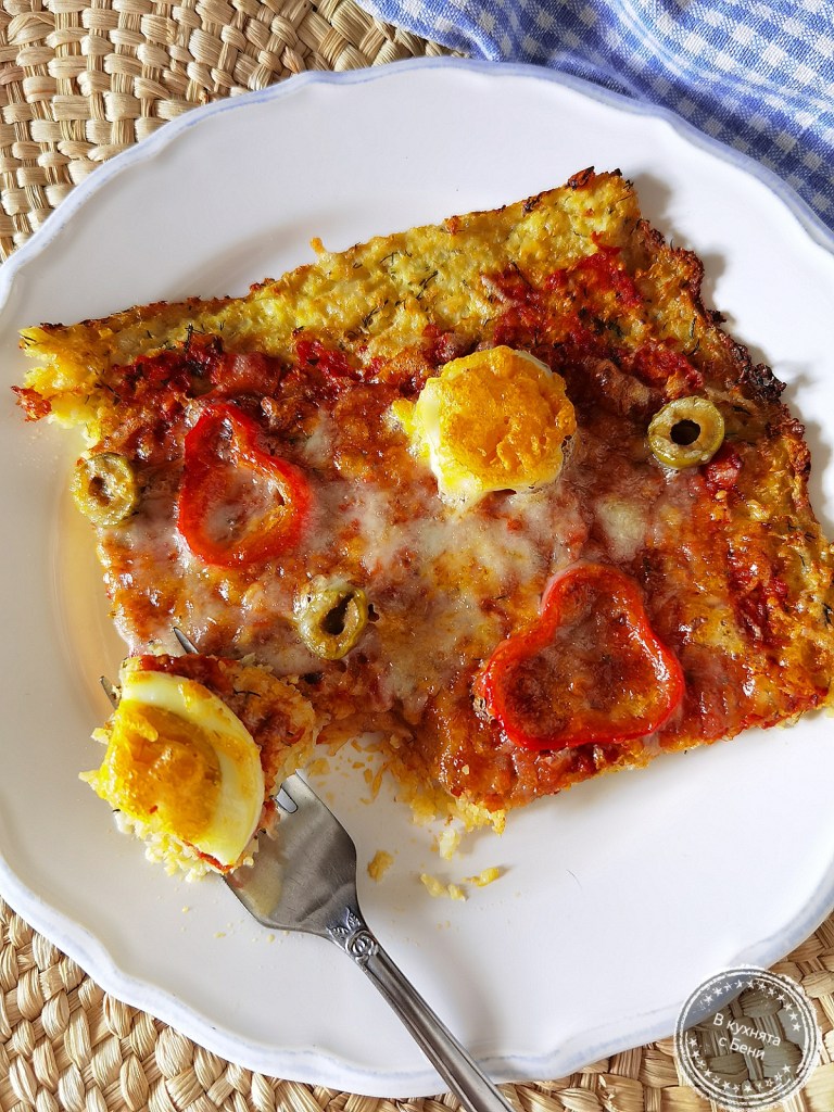 📌Може да гарнирате пицата с карфиолен блат с шунка или други ваши любими продукти.