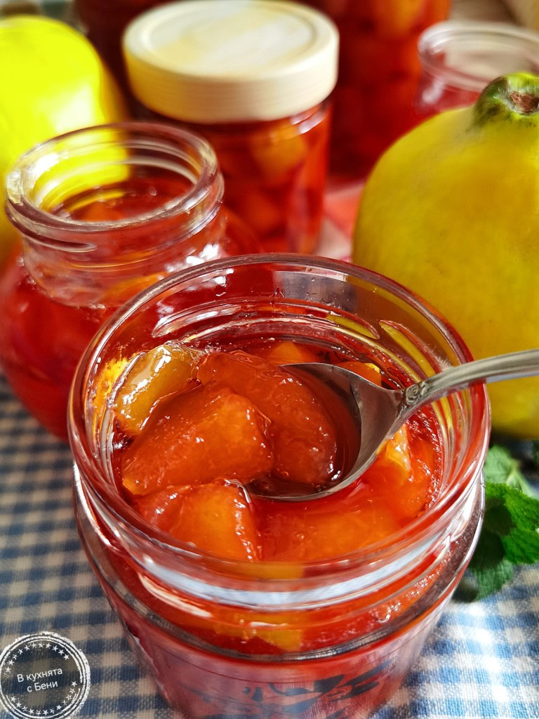 След публикацията ми със сладкиша с дюли, се сдобих с още чудесни дюли-подарък, с част от които приготвих първото си сладко от този ароматен плод.😍🍈🍯🎁👩🍳 Макар да не личи от снимката, вкусът се получи разкошен, а текстурата точно каквото желаех – с достатъчно сос. 😋🥄Не бях сигурна дали дюлите ще запазят формата и размера си при варенето и следващ път ще ги нарежа да по-правилни парченца, за да е още по-красива визията.☺️ Сега си имаме вкусно сладко с градински дюли, което е перфектното допълнение за палачинките, пържените филийки и каквото си поискаме. Направете си и вие, защото по-вкусно от домашно приготвеното няма. 😍😋💯