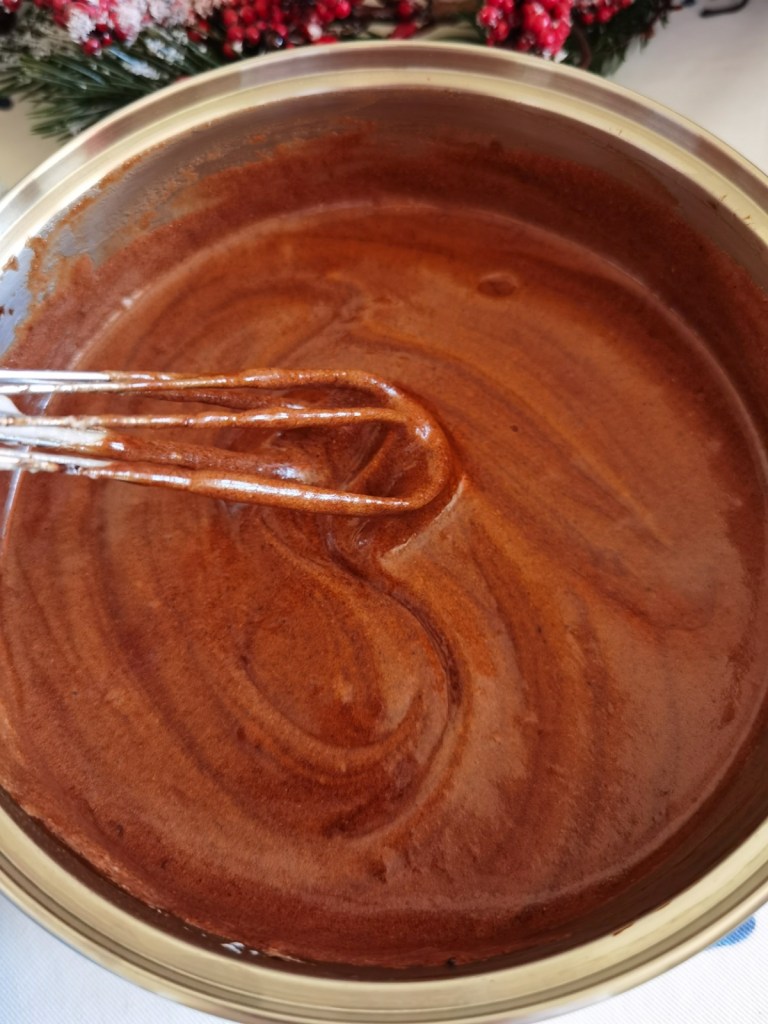 Първо приготвих блатовете, като в дълбока и широка тенджера сложих водата, орехите, захарта и какаото и варих на слаб огън 5 минути. Много е важно степента на котлона да не е висока и да се разбърква непрекъснато, за да не загори сместа.