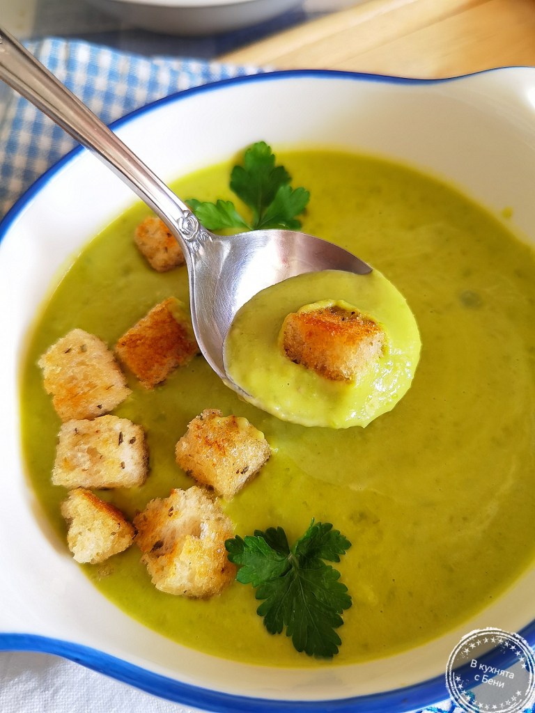 Сервирах супата топла, допълнена с крутони.