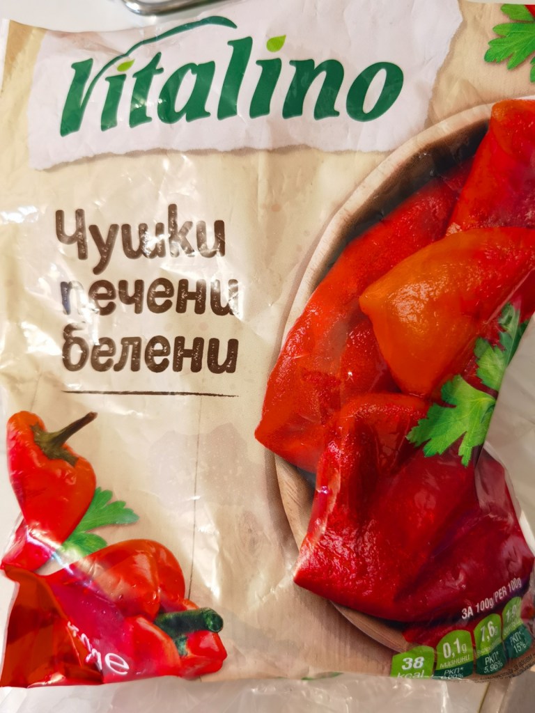 За добрия вкус на ястието е важно чушките да не са купешки от буркан! Най-добре е да са домашно изпечени и замразени от лятото, но тъй като аз не разполагам с такива, купих печени и замразени, които се оказаха превъзходни. И така, оставих чушките да се размразят, след което всяка разрязах на две половини и почистих от останали семена.