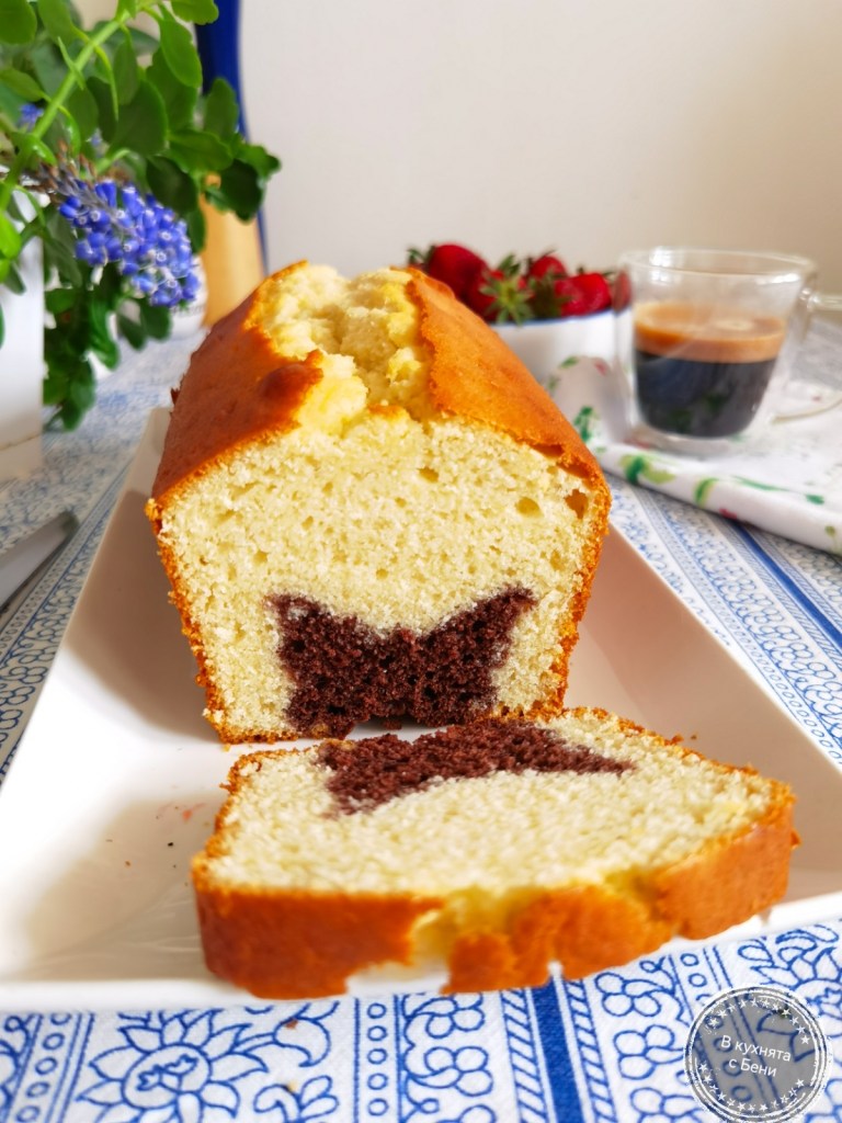 Времето навън по нищо не подсказва, че е месец април и пролетта вече е тук. 🤨☔️❄️Но съм сигурна, че съвсем скоро ще ни погалят топлите слънчеви лъчи, птичките ще огласят ухаещият на цъфналите дръвчета въздух и настроението ще е повече от прекрасно. ☺️🌞🌷🌳🐦Така въодушевена рано сутрин изпекох този маслен кекс, с много нежна текстура и контрастна пеперуда, която що годе се получи с правилна форма.🦋👩🍳 Много е вкусен и заслужава да бъде опитан.😋🥧 Поднасям го с чаша ароматно кафе и ви пожелавам щастлив и ползотворен ден!🥰☕️