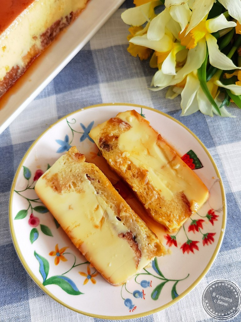 📌Може да приготвите десерта и в малка тавичка, без да го обръщате. Възможно е в този случай да се нуждаете от още 1-2 филийки козунак.