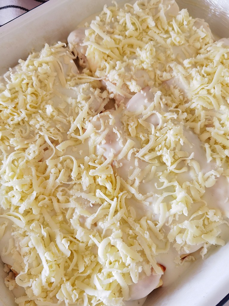 Тава с размер 30х25 см. намазах с масло. В средата на всяка палачинка сложих по около 2 с.л. от спанака и завих първо от двете страни, а след това на руло, което разположих в тавата. По този начин приготвих всички палачинки. Полях ги с белия сос и поръсих с настъргания кашкавал. Сложих в загрята на 180 градуса фурна да се запекат до апетитен загар на кашкавала. Оставих леко да се охладят преди да ги сервирам.