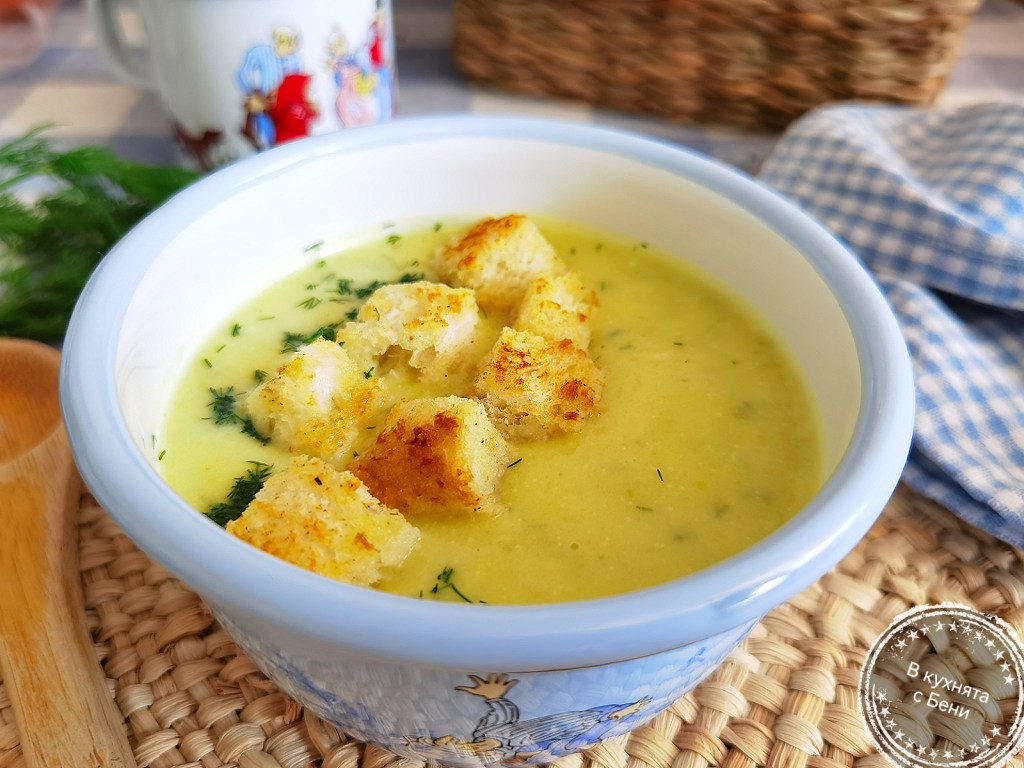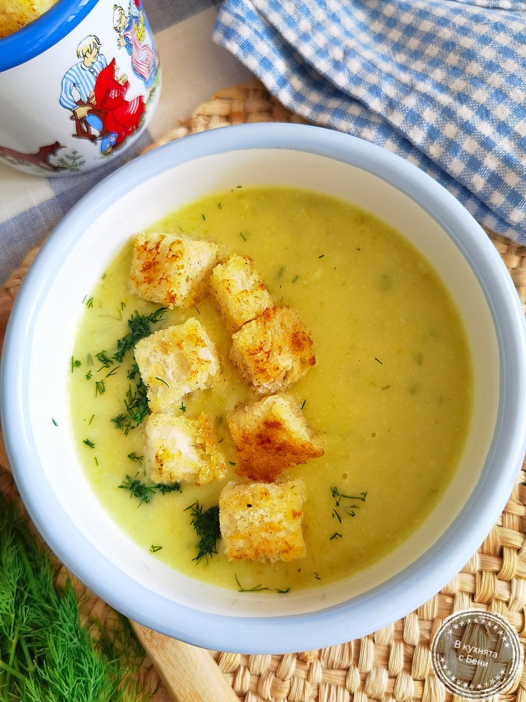Тази крем супа от тиквички ми е любима още от дете. Когато мама ми я поднасяше, бях много радостна. Сега аз я приготвям и винаги е така вкусна и носеща ми мили спомени. 🥰🥒🥣