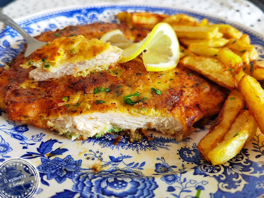 Вкусен пилешки шницел с пържени картофи от https://inthebeniskitchen.com/