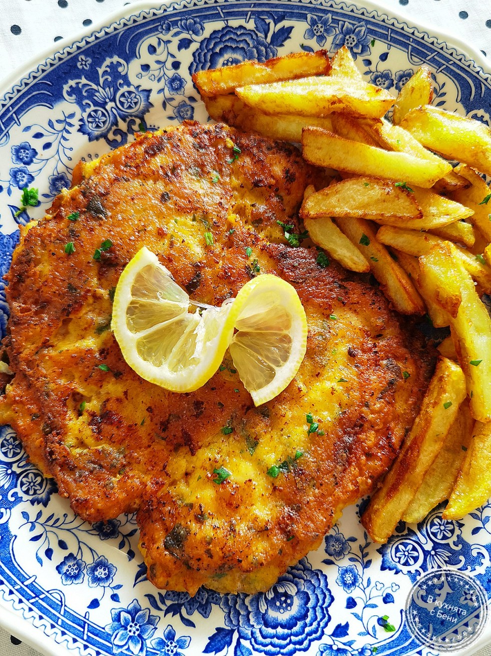Здравейте, приятели! 🤗Пилешки шницел с пържени картофи беше обядът ни днес. 😋🍛🍴👩🍳Много сочно и вкусно се получи месото и препоръчвам да го опитате.👌☺️🍽🍻Прохладна и приятна вечер ви пожелавам!🥰🍹За 2 големи порции са нужни:🍴2 бр. пилешко филе пеперуда (500 гр. общо)🍴Брашно за овалване🍴2 яйца🍴½ ч.л. сол (фино смляна морска)🍴1/5 ч.л. млян бял пипер🍴2 с.л. ситно нарязан… Продължете да четете Пилешки шницел с пържени картофи