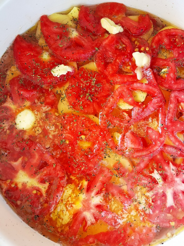 🥘1 голям домат (нарязан на тънки шайби)