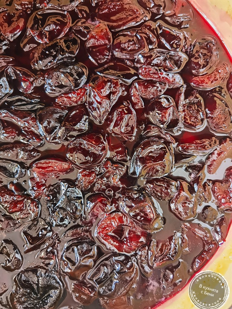 Когато сладкото бе готово, добавих лимонената киселина, разбърках внимателно, оставих във фурната за още 2-3 минути и още горещо го разпределих в напълно сухи бурканчета, които затворих с капачетата им.
