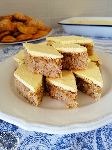 Към отделените жълтъци добавих пудрата захар и ванилията. С миксер ги разбих до побеляване на сместа или около 3 минути. Нанесох глазурата върху още топлия към горещ блат и разпределих равномерно. Върнах сладкиша във фурната и суших за около 1 час. Моята майка го оставяше да се суши на стайна температура за 24 часа, но аз предпочитам този начин. Готовия сладкиш оставих да се охлади напълно, преди да го разрежа.