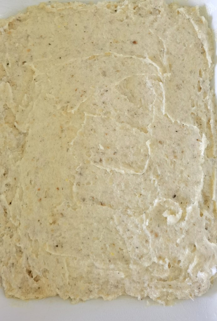 Тава с размер 22х30 см. намазах с масло и поръсих леко с брашно. Изсипах сместа, загладих и сложих да се пече в предварително загрята на 170 гр. фурна, за около 25 мин. или до суха клечка, прободена в най-високата част на печивото.
