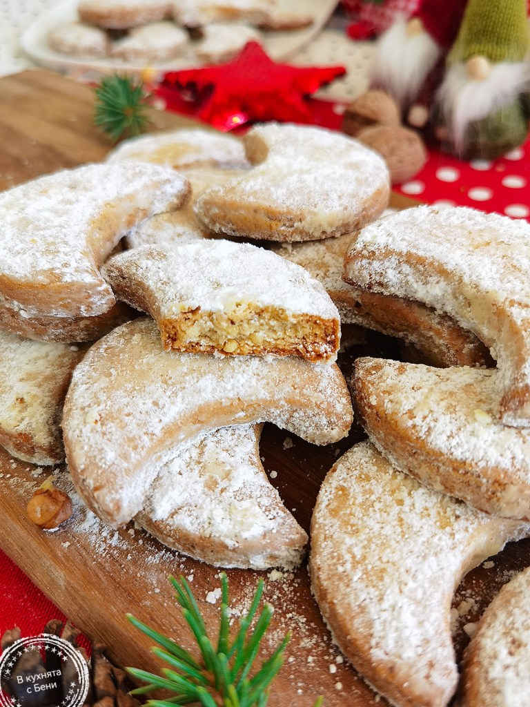Първият паднал сняг ми повлия вдъхновяващо и днес приготвих тези крехки, ароматни и топящи се в устата бисквити, които са перфектни за наближаващите празници. 🍪😍🎀🎄Правят се много лесно и няма какво да се обърка. Аз ги изрязах като полумесеци, но вие може да им придадете форми по ваше желание. 😋👩🍳🍪Разбира се, бисквитите са чудесно допълнение към всеки подарък, а и самите те, опаковани красиво, биха били такъв.☺️🎀