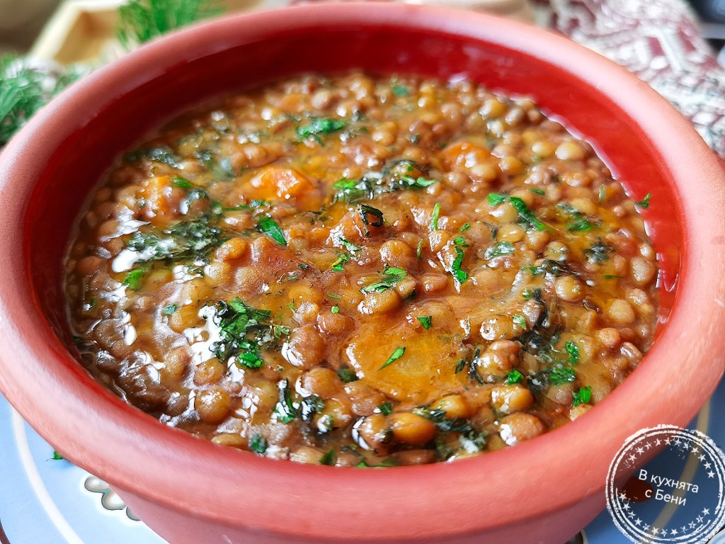 Това е може би най-често приготвяната гозба у дома, поне два пъти седмично и бих казала, че е много вкусна и полезна.😋🍲☺️ Лещата се споменава още от библейски времена и наистина е пълна с ползи за здравето ни. Все по-рядко я приготвям като чорба, а най-често по този начин, като яхния.☺️🍲🍴