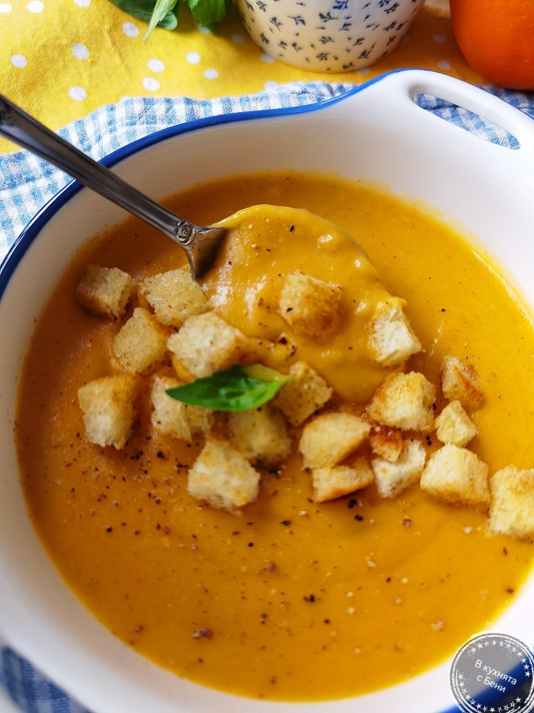 Преди време си бях запазила рецептата на Йоли за най-вкусната крем супа от тиква и днес дойде ред да я приготвя. ☺️🥣🎃👩🍳Мога да кажа, че супата наистина е разкошна и стана любима у дома. 👌😍Даже вече имам поръчка утре да я направя отново. 😀Текстурата й е кадифена, а вкусът бих нарекла гурме. Имайте предвид, че поради наличието на подправки с по – интензивен аромат, супата има наситен и съвсем леко кисел вкус. 😋🥄💯