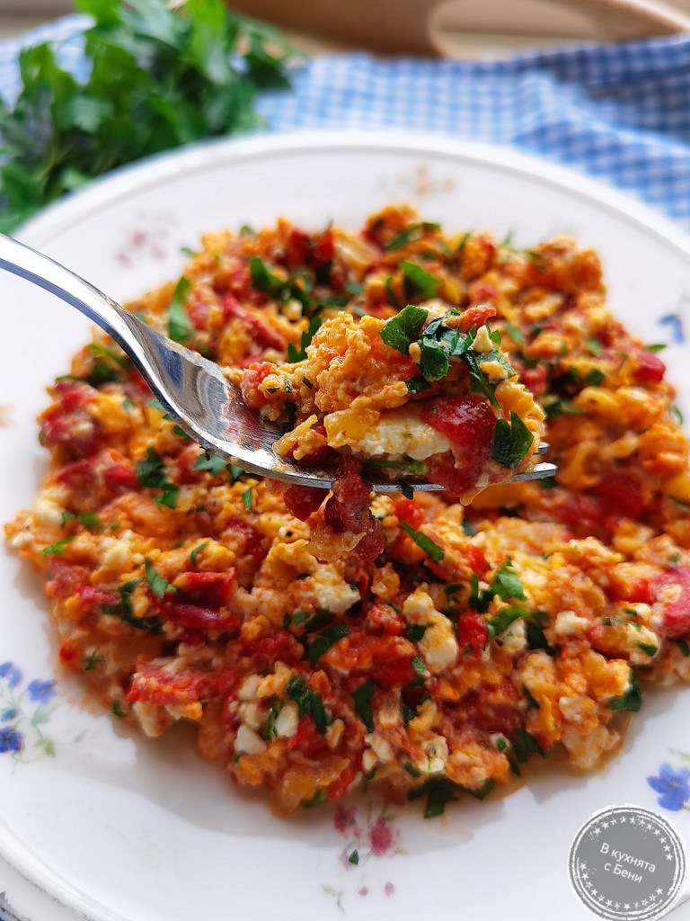 Както сигурно сте забелязали, готвя обикновени ястия и десерти и ги споделям с вас, с идея да ви бъда полезна в избора на ежедневното меню. Такава е и днешната ни вечеря-миш-маш, или ястието, което не се слави с добра визия, но е едно от най-любимите у дома. Приготвих го със замразени печени чушки и се получи безкрайно вкусно. 😋🌶🥚🌿🥘
