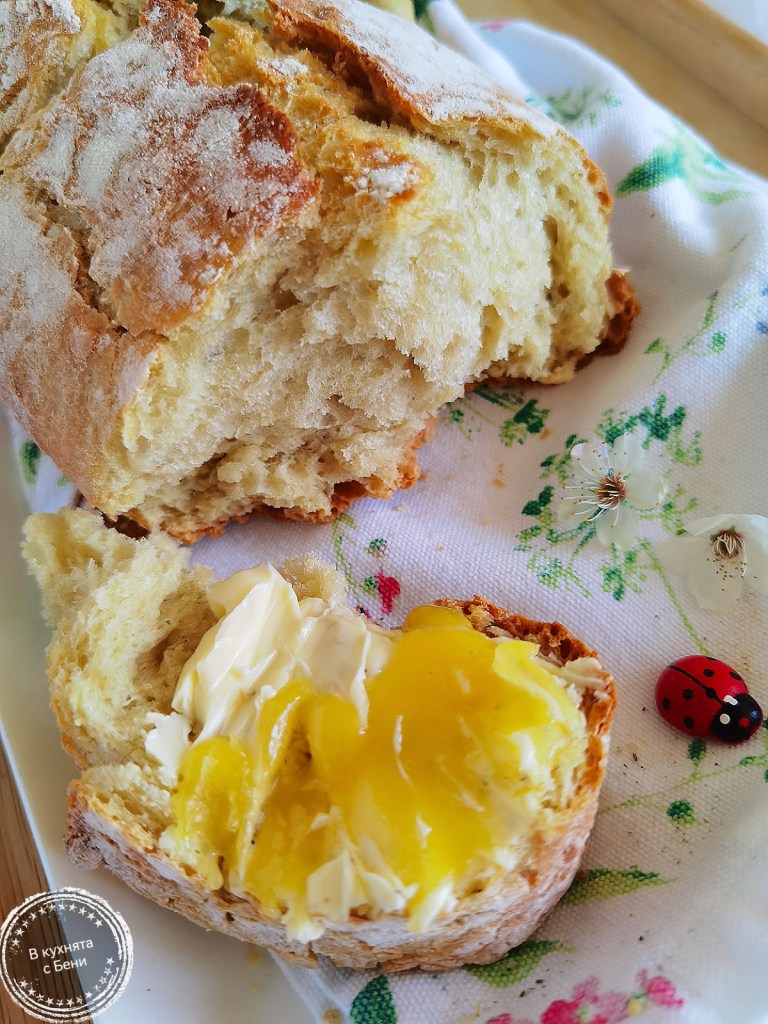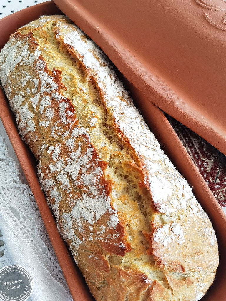 2. Направих хляба в обикновена форма, в която пека бананов хляб. Много добре се получи- хрупкав отвън и пухкав отвътре. Супер лесна рецепта, благодаря Ви!