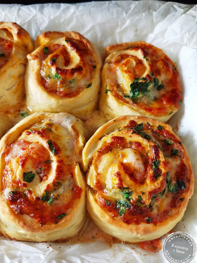 По-рано днес изпекох тези чудни и меки рулца с вкус на пица и нямам търпение да ги споделя с вас. 👩🍳🍕😋🤩На вид всяко е със свой облик, но по-важно е, че вкусът им е прекрасен. Много меки са отвътре и с маслена коричка отдолу. ☺️👌