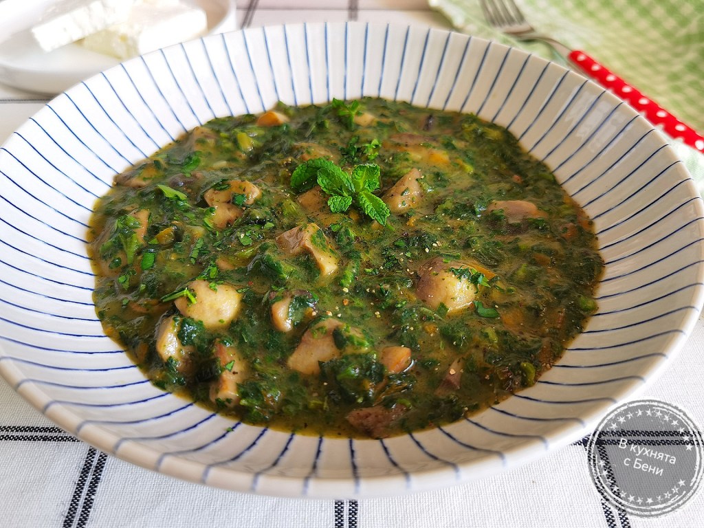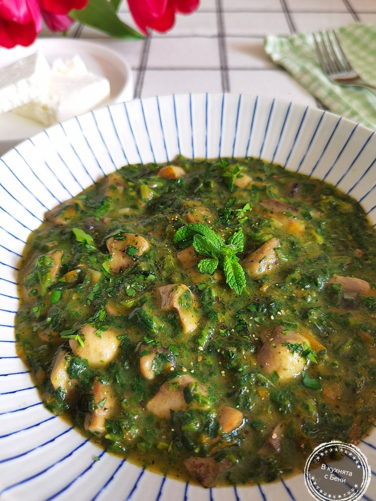 У дома ухае на пролет или по-точно на вкусна копривена каша с гъби. 😋🥘🌿🍄☺️Приготвянето й отнема малко време, а вкусът й е повече от чудесен. Ако не ползвате масло, а само олио, гозбата ще бъде подходяща и за постещите от вас. ☺️🍴