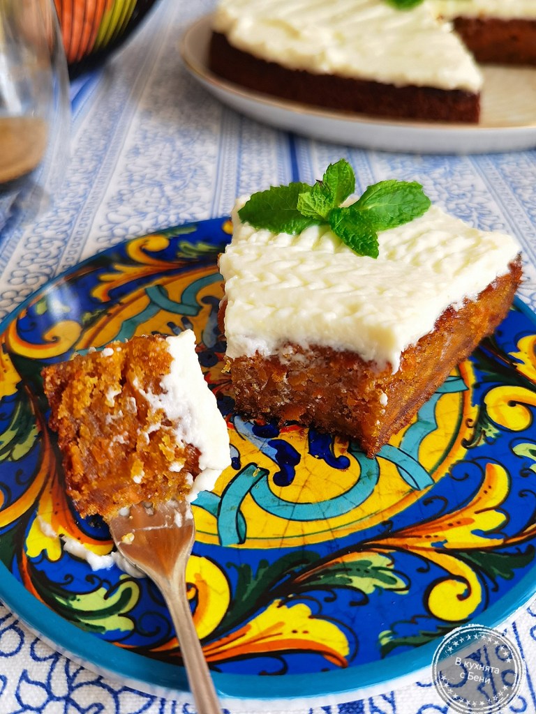 🥕Текстурата на сладкиша бих определила като на плътен крем. Най-вкусен е след като се охлади и всяка хапка се топи в устата.