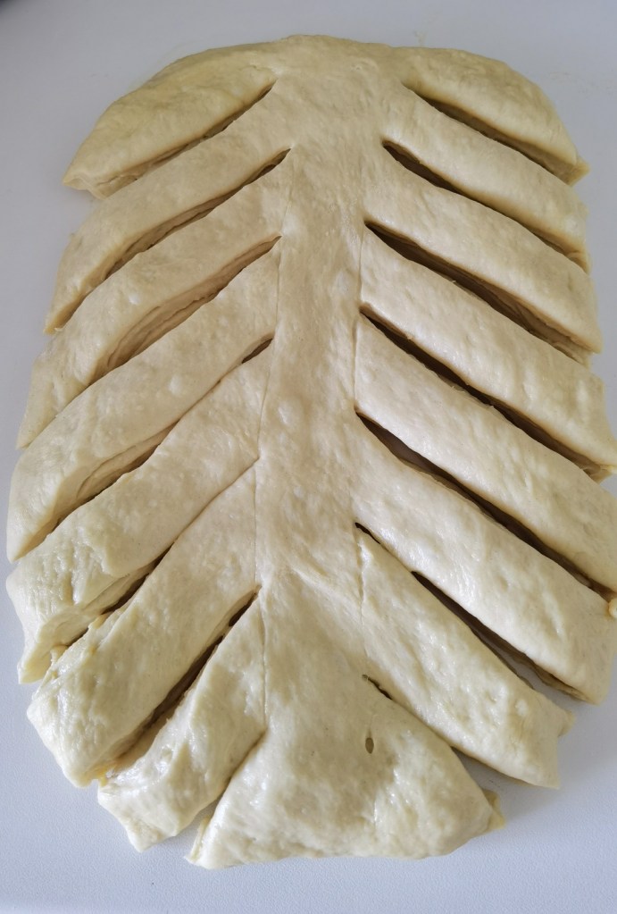 С остър нож направих странични прорези, които прехвърлих един върху друг, оплитайки плитката.