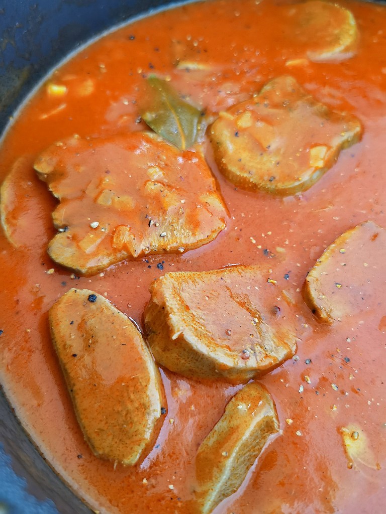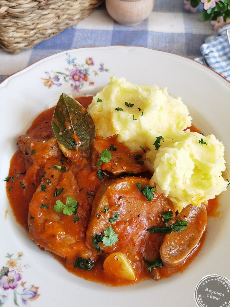 📌Сосът направих с доматено пюре, защото то е концентрирано и така не се получава воднист. Ако се приготви с пресни домати, ще е нужно доста повече време, за да се редуцира сосът. Но може и така да се направи.